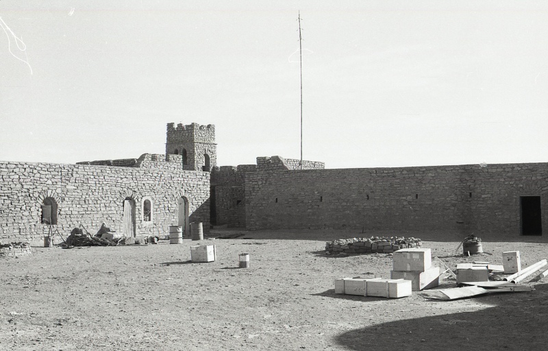 Het binnenhof van het Chegga fort: de NO hoek van het fort. Hier zien we de ingang naar de verblijven voor de manschappen. De radio antenne is van ons om dagelijks contact te hebben met onze mensen in Nouakchott (hoofdstad van Mauritanie)