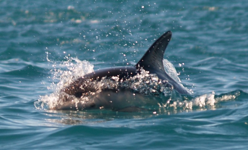 A Dusky Dolphin breaches during Hein's "swimming with the dolphins" trip. This was an adventure of a lifetime to swim with these magnificent animals in the open ocean over 1000m deep.