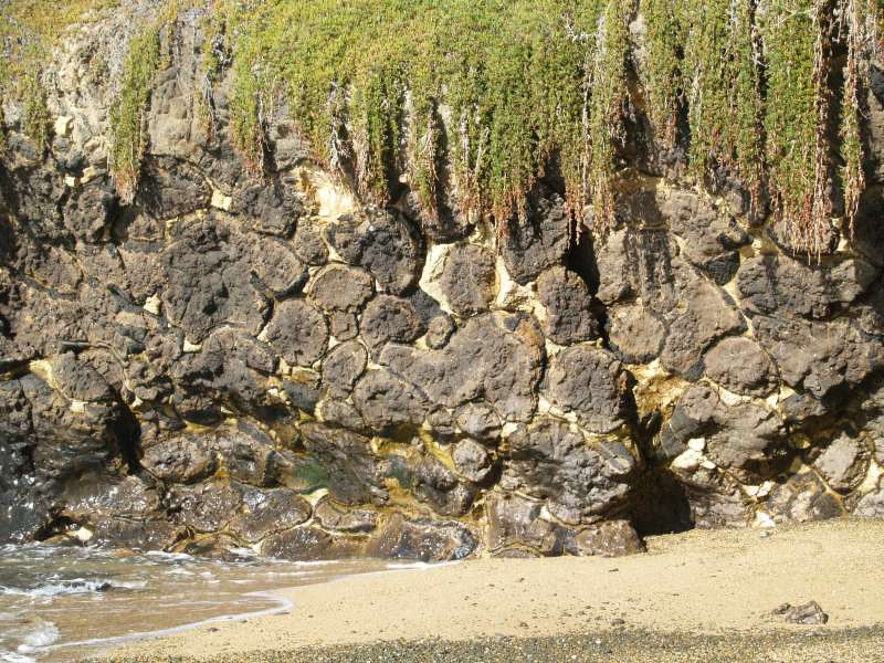 Pillow ("kussen") lava: deze afgeronde blokken gesteente worden gevormd als vulkanische lava in water vloeit. Het is vaak gepaard met rustiger fasen van onderzeese vulkanische erupties.