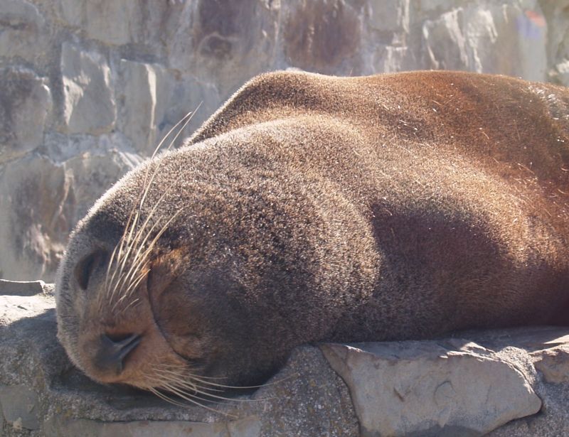 Deze zeehond lag te zonnen/slapen op dit lage muurtje met passerende mens