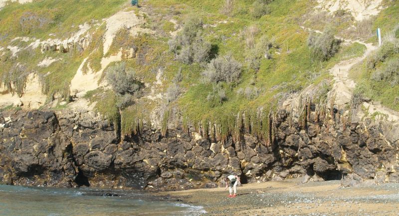 Wil in front of the Pillow Lava: "these rounded blobs of rock