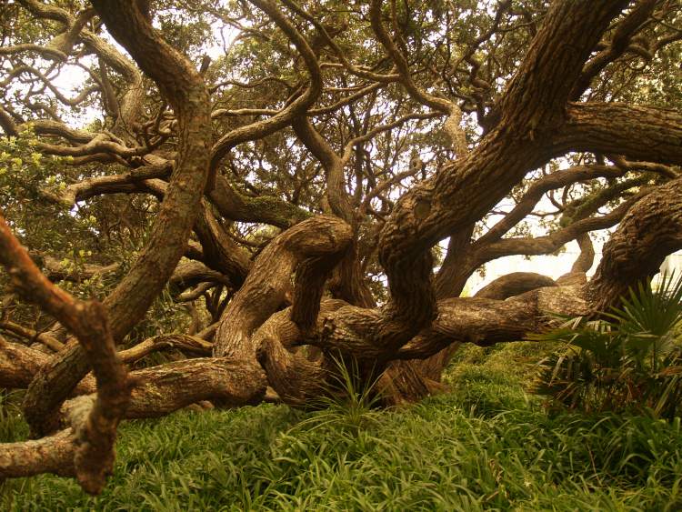Twisted trunks of an old Pohutukawa tree ( the New Zealand Xmas tree by virtue of it's blooming around Xmas) in central Auckland.