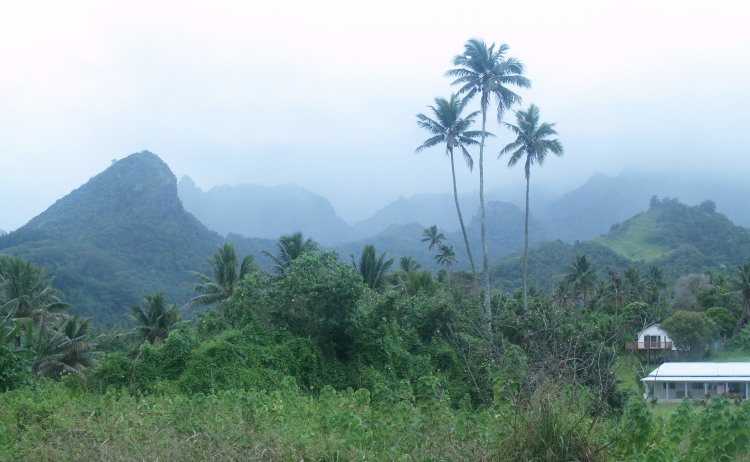 Platteland van Rarotonga: de heuvels van het vulkanische binnenland.