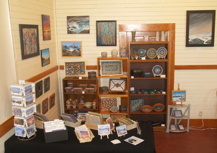 Wil's hoekje in de "Courthouse Gallery" in Atlin in de zomer van 2007.