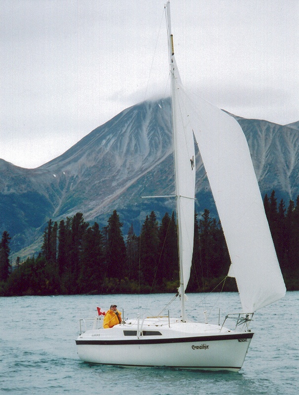 Hein aboard his sailboat: Gwaihir in front of Atlin