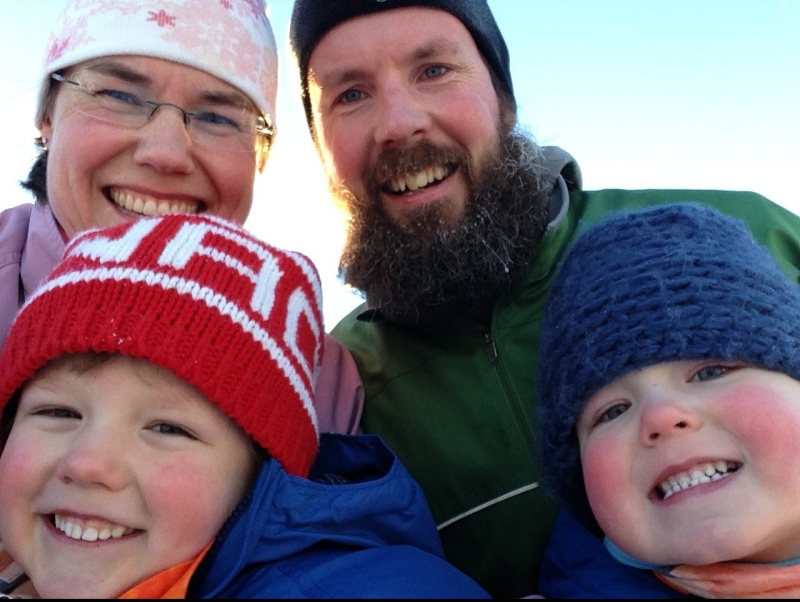 Lienke and Matt and Sullivan:L and Fletcher:R during the first ski in 2016